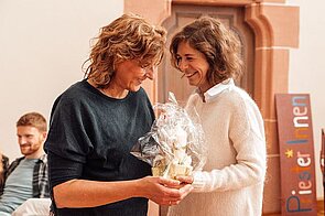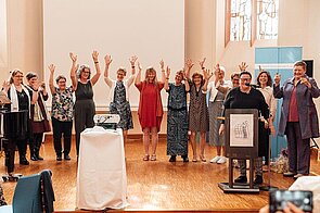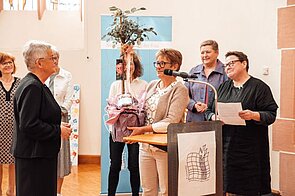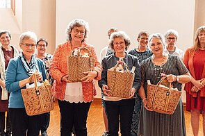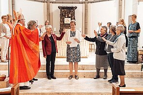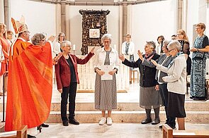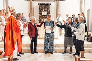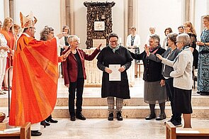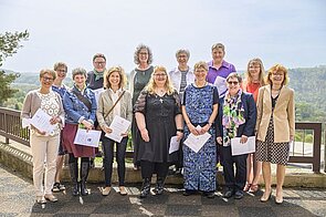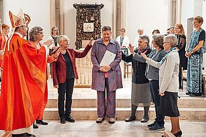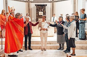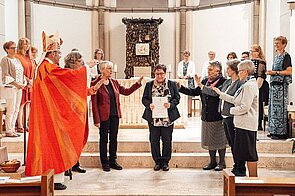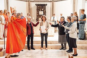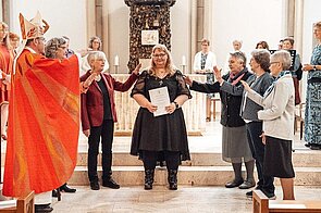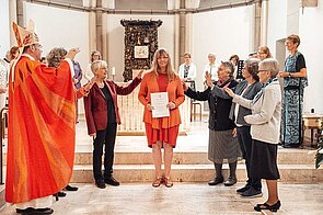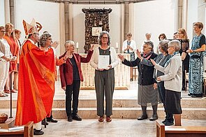 Die Absolventinnen erhalten ihre Zertifkate und den Segen von ihren Kursleiterinnen, Irmentraud Kobusch und Weihbischof Ludger Schepers.